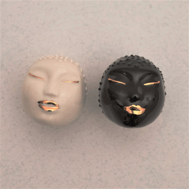 The Dance Hall Unique Salt Pepper Shaker Set is inspired by Dance Hall music and culture of Jamaica. They show mini faces with 18k gold accents. The unique salt and pepper shakers bring Caribbean roots and culture together with a moisture proof ceramic design made of sturdy porcelain. The cool salt and pepper shakers work well for home or restaurant use.